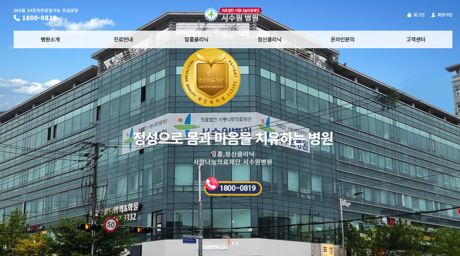 서수원병원 페이지 정보 작성자 관리자 작성일17-06-15 13:46 조회2,441회 댓글0건 관련링크 이전글 다음글 목록 본문 http://soscenter.co.kr/ 댓글목록 등록된 댓글이 없습니다. 이전글 다음글 목록